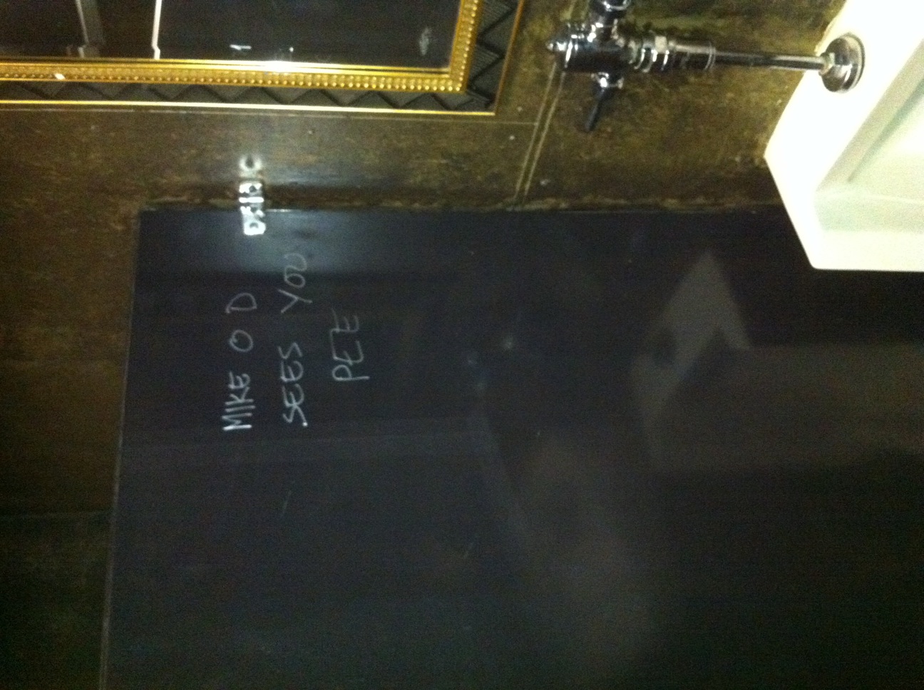 so came into work last monday and after i got the kitchen set up I went to take a piss, when i turned my head some had written