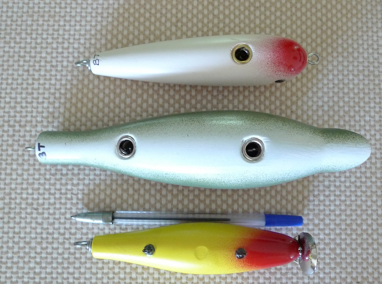 I have been spending a few evenings in my shop and these plugs are now ready for eTex and fishin. The white darter is going out to MuskySlayer as part of a trade...