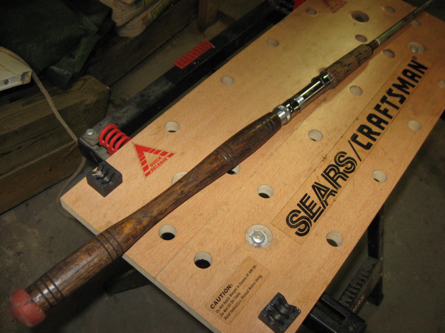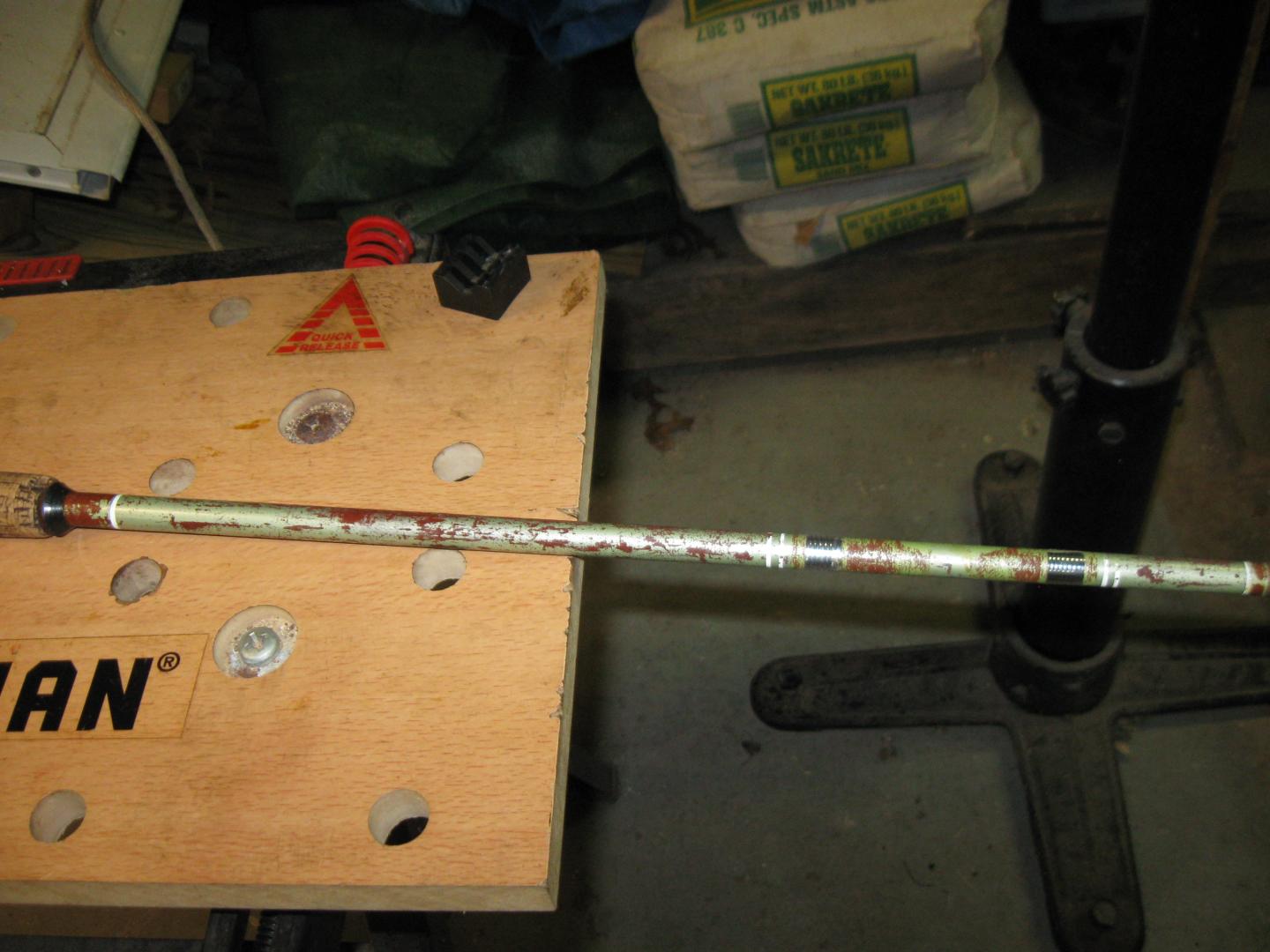 I just recently remembered that I bought this old boat rod at a yard sale sometime ago. I want to rebuild this rod for party boat striper fishing but I am at a loss to if its worth it. I stripped the old guides and wraps off and there is no serious damage to the blank, just some minor cosmetic scratches and the top finish is worn as one can see.