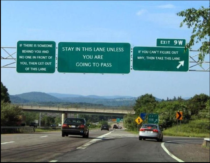I had to go to Bar Harbor twice in the last 2 months and found myself behind A-HOLE, MORONS who felt they owned the passing lane. When I could finally get by them I would put my arm out the window and point at the "KEEP RIGHT EXCEPT TO PASS" signs. Yeah I have road rage, but I move over when there is someone who wants to get by no matter how fast I'm going, why cause them or myself the aggravation. Move over let the person by and no one is upset, you aren't mad at the tailgater and they aren't mad at you for blocking them, and they are gone. But no, they say to themselves "F-ck the guy in the rearview mirror who is tailgating me" why because I am an A-hole who has my head up my arse.