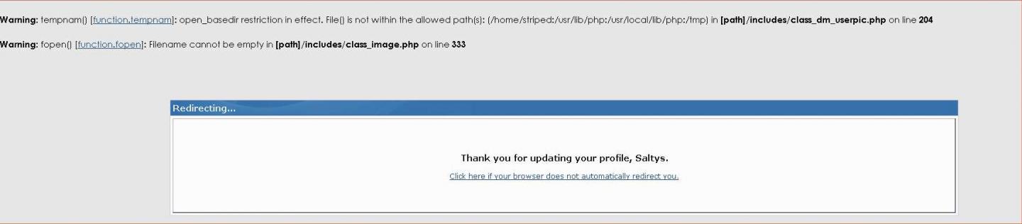 john i logged my pc in on the saltys acct i use on the iphone and went to change my avatar and got this message then the window reloaded to the screen that showed the avatar saved ok.