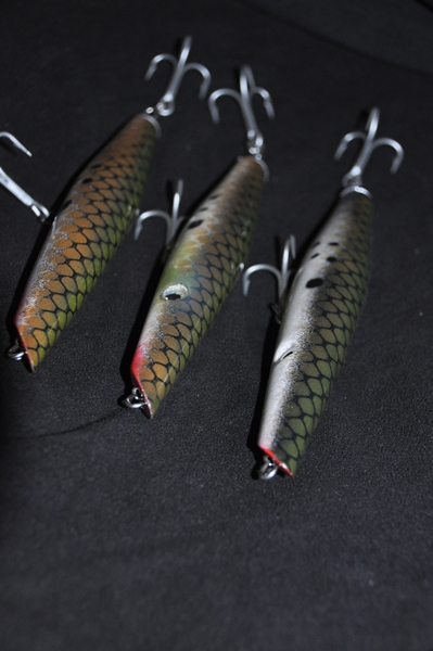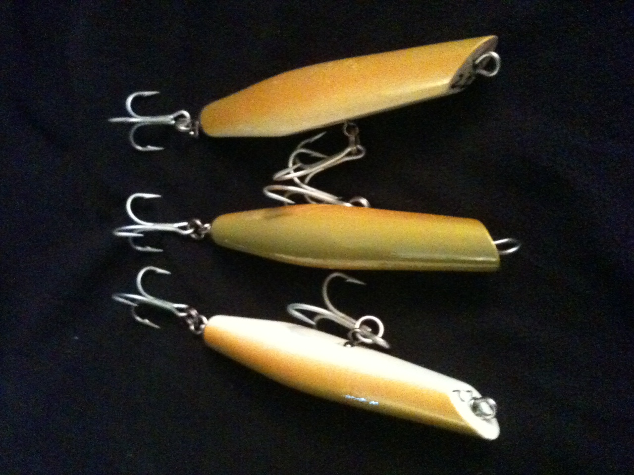 All the lures including the large spook are 3 oz or better and the small spook is 1.6 oz and should be sub surface. Sorry guys, all of the plugs are spoken for, maybe I'll set some aside on the next batch.....