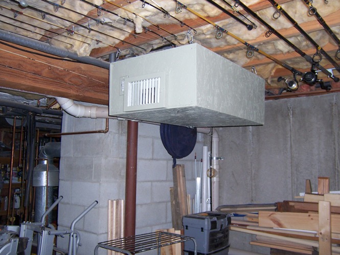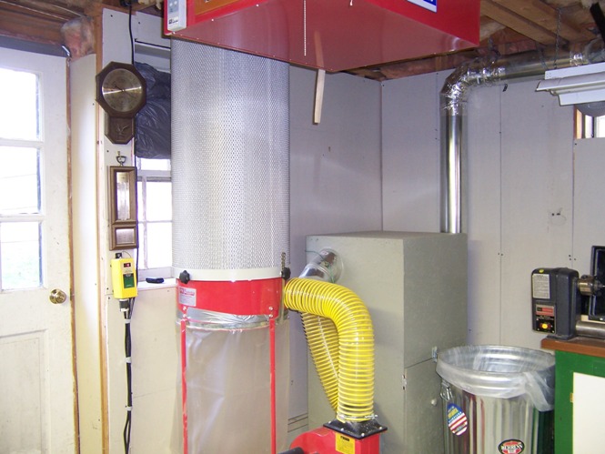 Using the same scrap lumber ( 7/16 sheeting) and a 1000 cfm blower I had hanging around I built a AFD ( air filtering devise ) to complement the 650 cfm one I had installed a few years ago.. i fitted it with a 12 X 24" smoke filter ( bought from Penn State industries) and a disposable pre filter.. set up at the opposite end of the shop it keeps the air moving in the boxed in end of the shop...