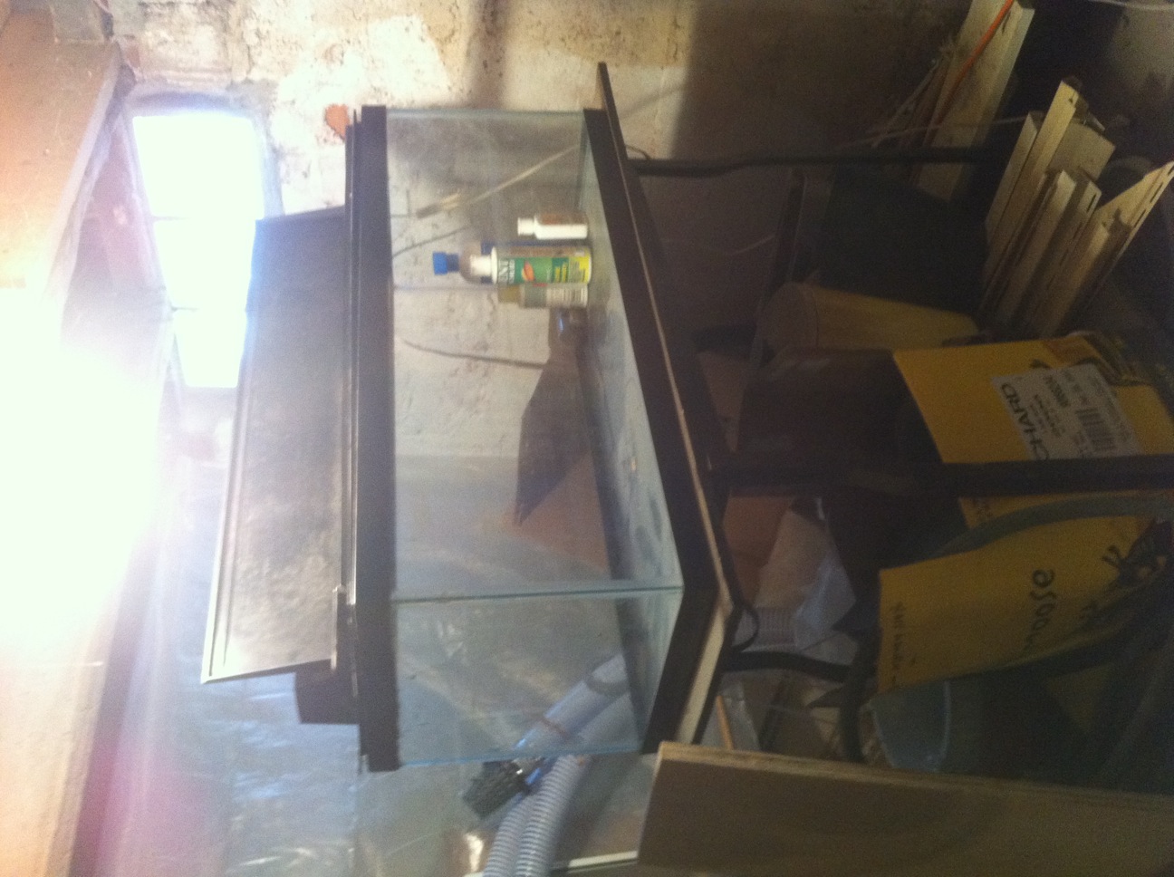 Cleaning out the basement have a 20 or 30 gallon low profile tank with lighted cover and black metal stand.