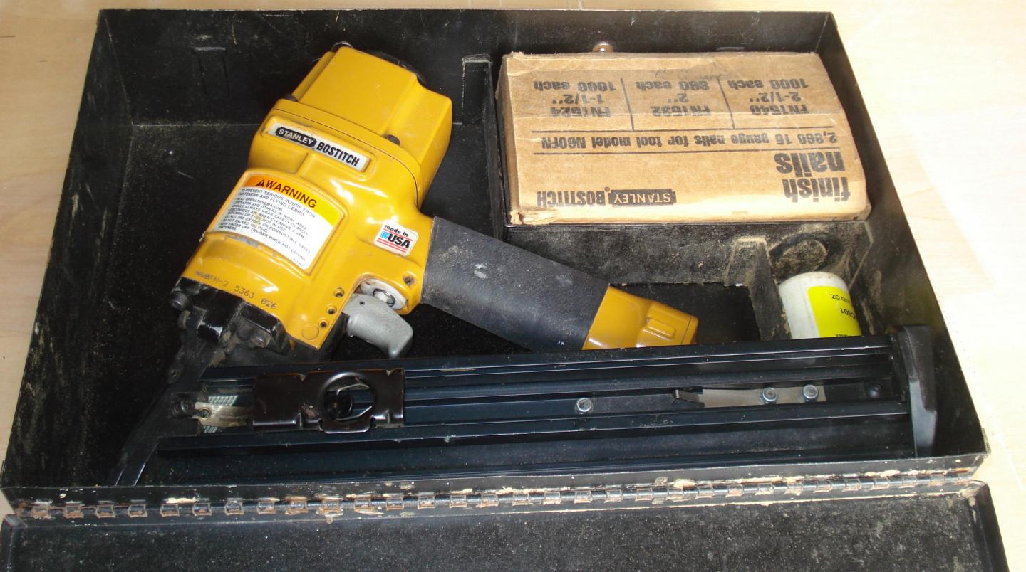 ...Stanley Bostitch 2 1/2" 15 ga..finish angle nail gun. Original metal case. Excellent contions. $120