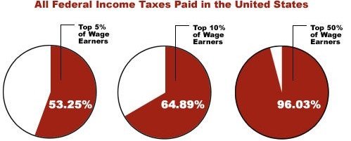 The top 5% pay more than HALF the burden. more than half pay nothing yet get full benefits and complain that they are not getting their fair share...THAT is the point