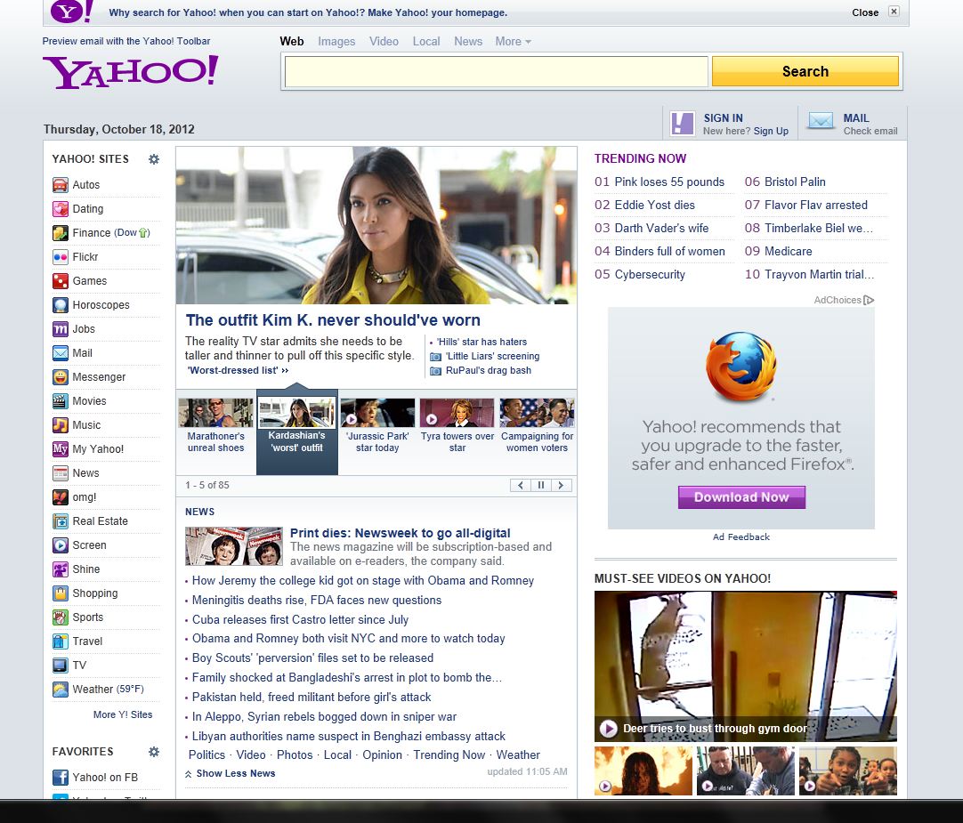 My yahoo home page changed its look using firefox. I have the same computer at home and it hasn't changed. Here is a before PIC 1 and after PIC 2. How can I make it look normal again?
