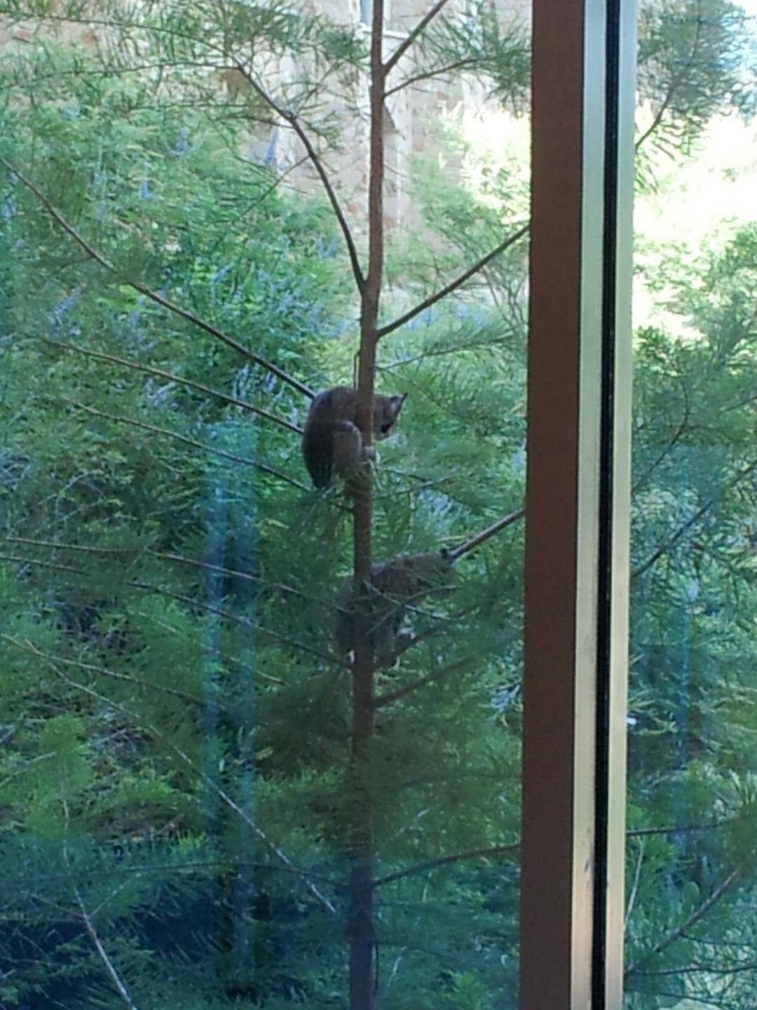 baby bobcats in tree