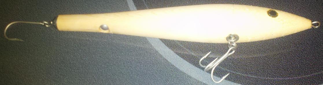 MS, Everything you need to know about spooks has just been provided by these previous posts. I think most important is to drop your line tie position as suggested. I would build the two versions Numbskull outlined and you'll see there is no such thing as spook hell, just wide variations in action from the same plug. Using cherry or maple, weighted front and rear, sinking horizontally at about 1 foot per second will give you a sweet glider that can walk the dog sub-surface. Great info guy's,