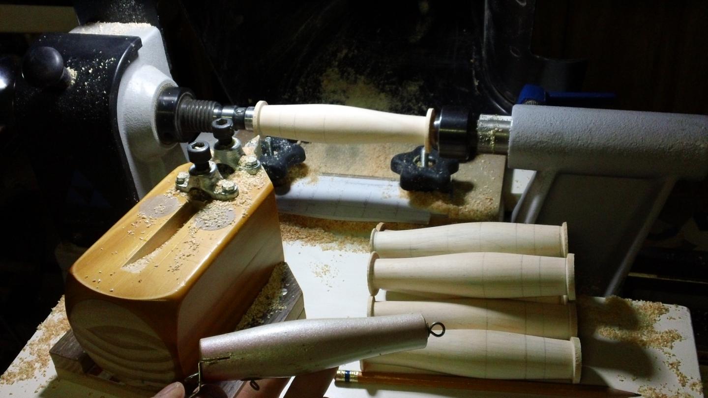 I draw them onto heavey stock paper after doing them on graph paper where I also place all my notes. Then take the heavey stock paper and place on a plastic sheet, where I have drawn a right angle center line axis and trace the outline onto the plastic. Place plastic in the vega and turn a plug with it. I tweak the plastic until it is just a smidgeon over what you want in the end. Sand and voila. Using plastic allows for you to make it just a little fat, so you can tweak it to perfection. I have attach a recent card stock drawing of a Montauk Darter.