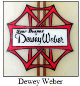Been doing some research. It seems that Dewey Weber used that logo to identify boards that he would use himself. Hope that mine is one of them. Would be worth some dough if it is. The board is probably a Performer from around 1965. My biggest concern is that the fin is different from what most of these Performer boards had glassed in... Going to speak with his son in the next few days