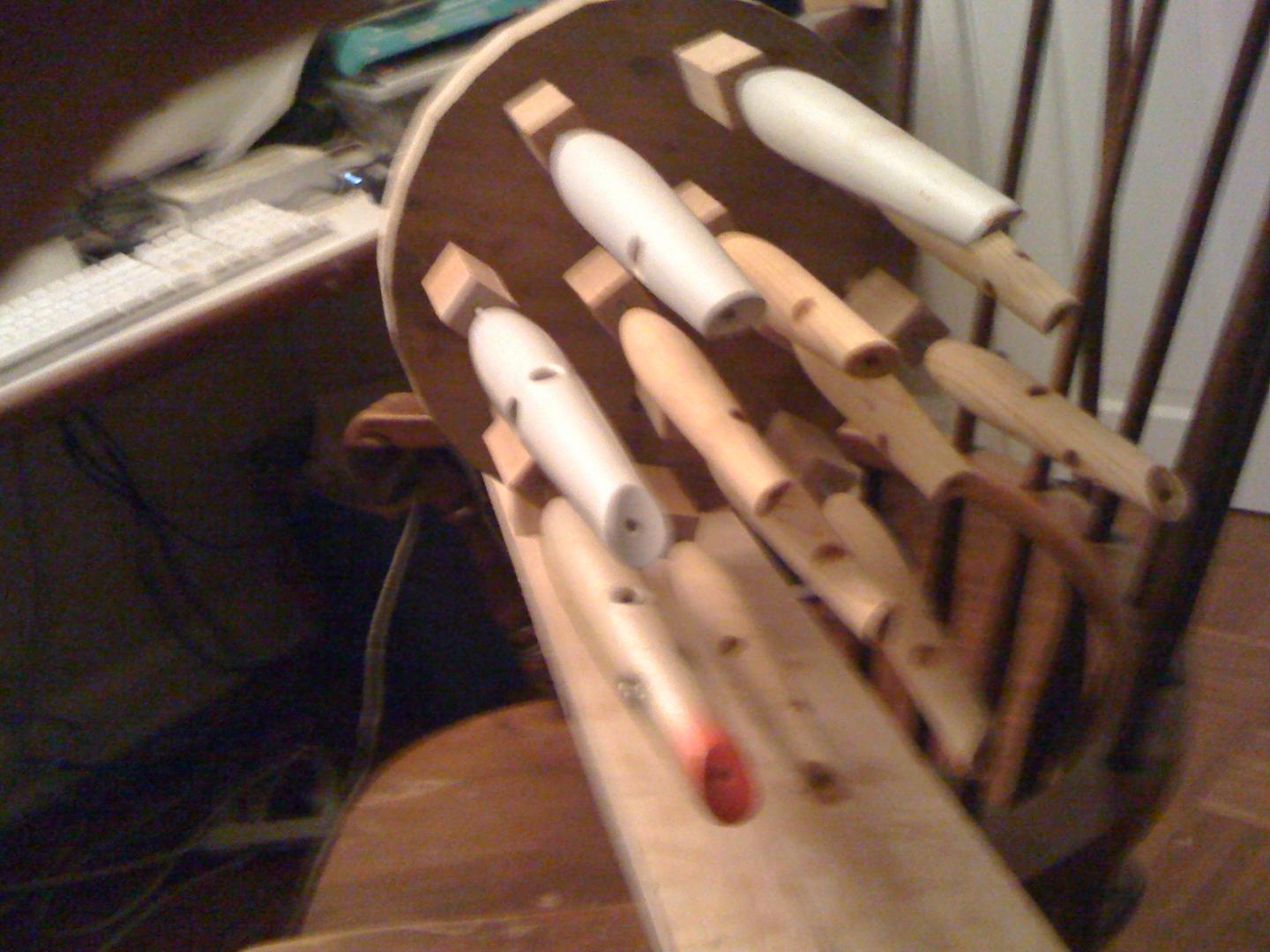 I put together a new spinner recently. It holds 12 plugs at a time. I like to Etex before wiring so this works better for me than suspending them on a wire. I through drill 1/8" for all my plugs so either large galvanized nails or 1/8" rod for longer lures in the holders work really well. I insert the holder into the back of the plug, etex it before putting on the dryer and simply plug the holder onto a peg on the disk. I have plans to put it all in a heated cabinet but right now I am working on a lot of plug projects and it works fine as is.