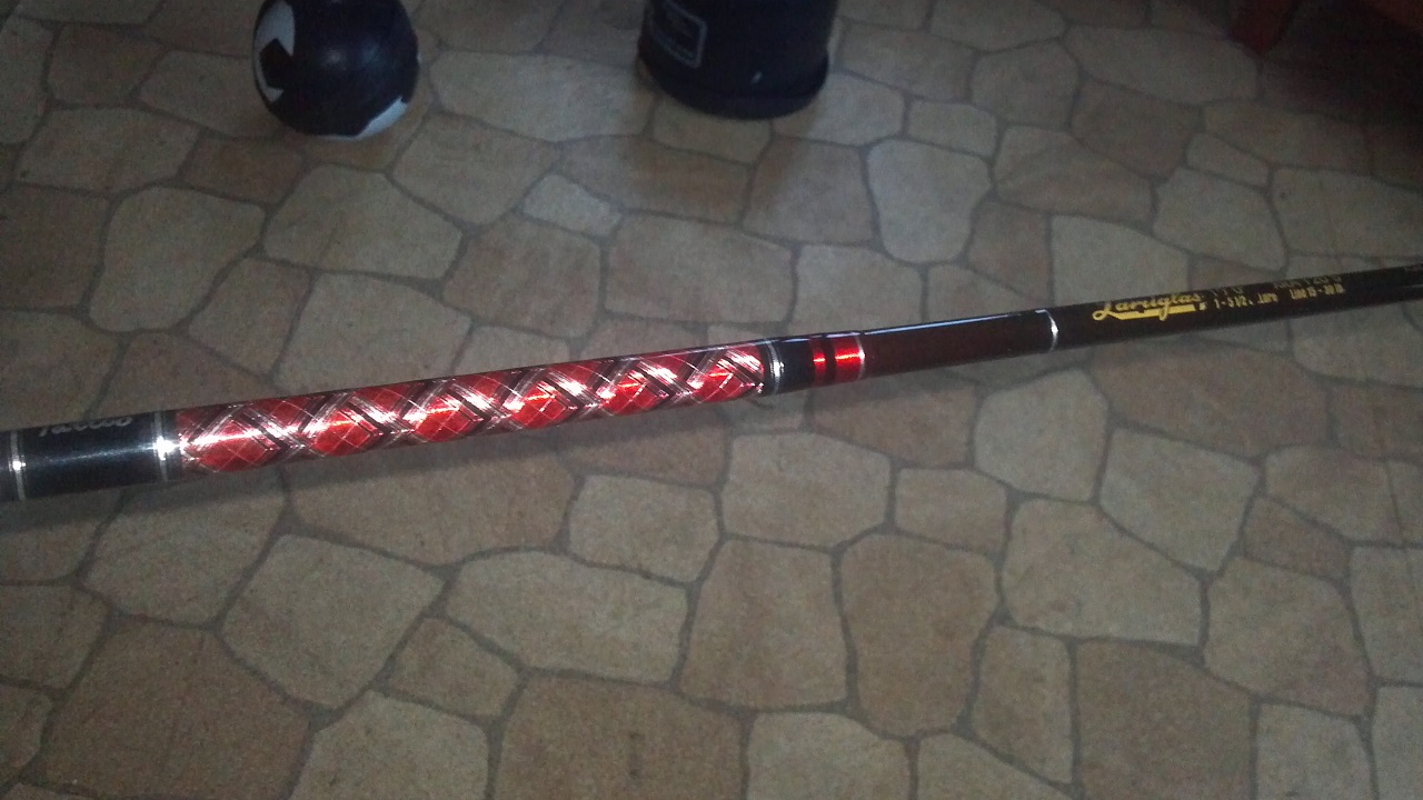Lami 1205, wrapped in metallic red with silver trim. Rod has my name on it "Tattoo" so you get that mojo for free.