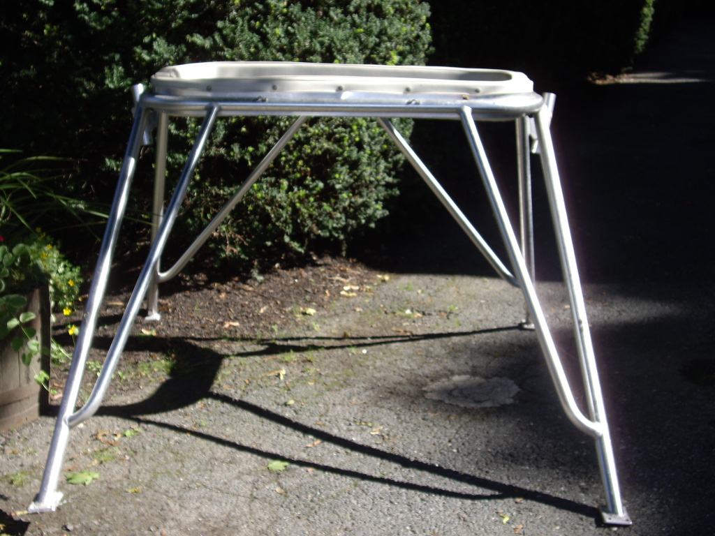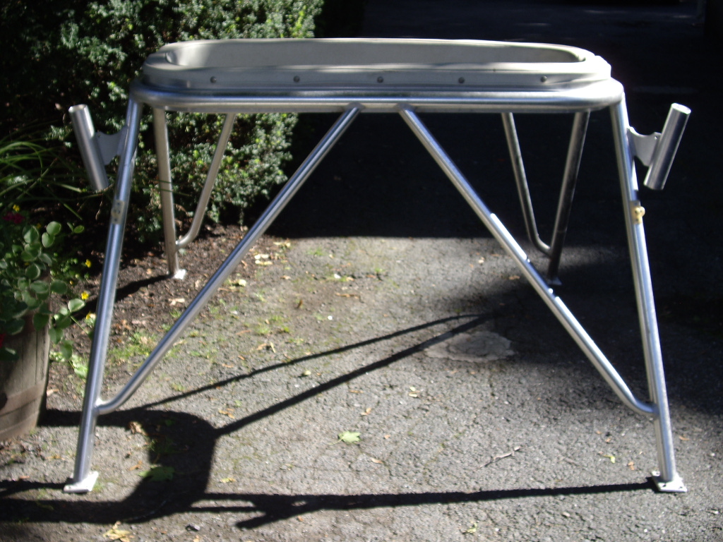 Not Exactly a tower, but fastens to coach roof or a big T top. Two rocket launchers. Aluminum, has 2' x 4' padded area to stand in. 39" tall. Base is 62 3/4 wide in rear, 61" wide in front to outside of feet. 69 1/8" front to rear. $500 or best offer