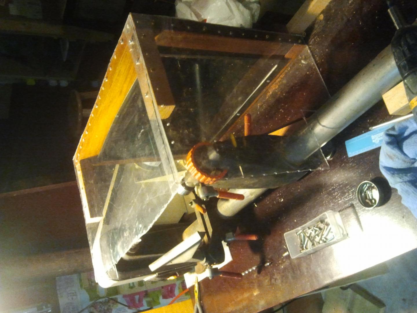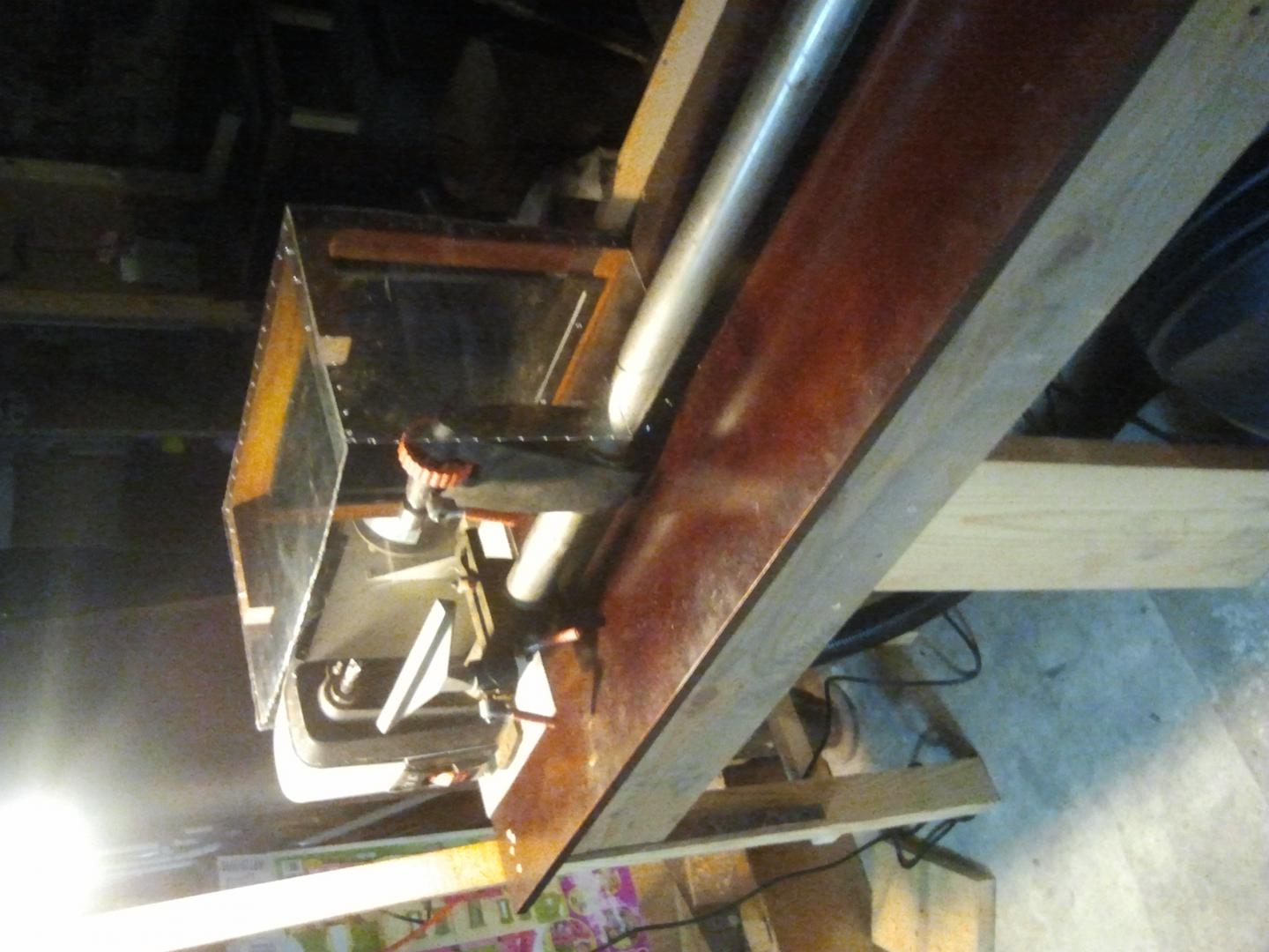 So I finally finished my dust hood for my lathe. She's not the prettiest girl at the dance, but she's all mine. Got the plexiglass for free from work. The wood skeleton for the hood is mahogany....it's all I had for hard wood. Anyway, hope you guys like it. The only piece that isn't mahogany is the rail...I didn't have a piece that long.