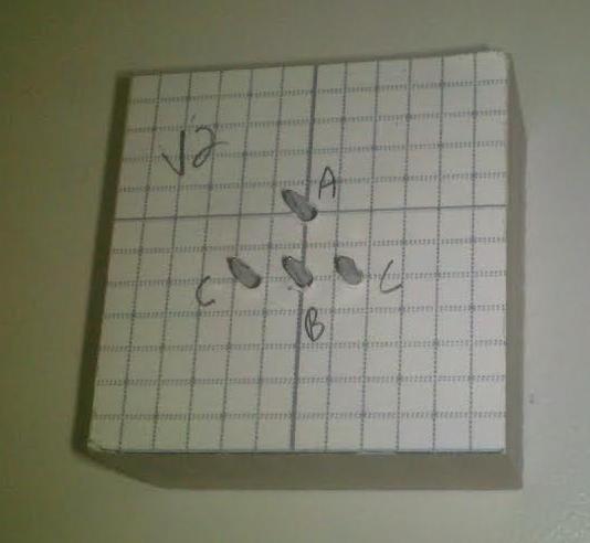 Now that the bottom, top and the sides of the lure were laid out, I had to figure out the head-on view, which was going to determine where the multiple turning axis (axes) needed to be. To do this I made a grid representing the end-stock of the wood blank. I placed a few turning points and drew arcs until I got the shape I wanted.
