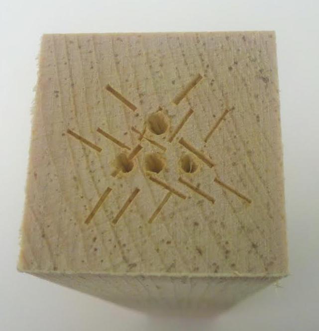 Accurately measuring and punching 4 turning points on end-stock can be dicey, so a centering template can be useful. You can make one out of 1.5” x 1.5” x .75” hard maple: - Carefully measure & awl the four points