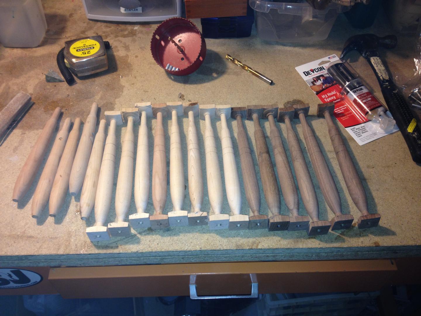 Modified these needles from screwed eyed floaters to through wired slow, level sinkers. Epoxy sealed some of them yesterday. Light colored ones are maple and the dark ones are black walnut.