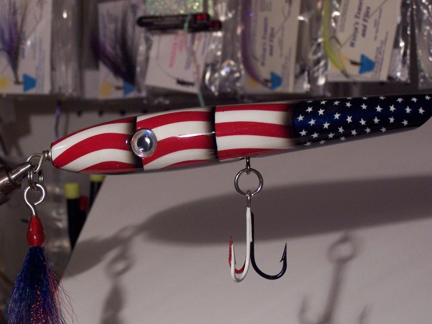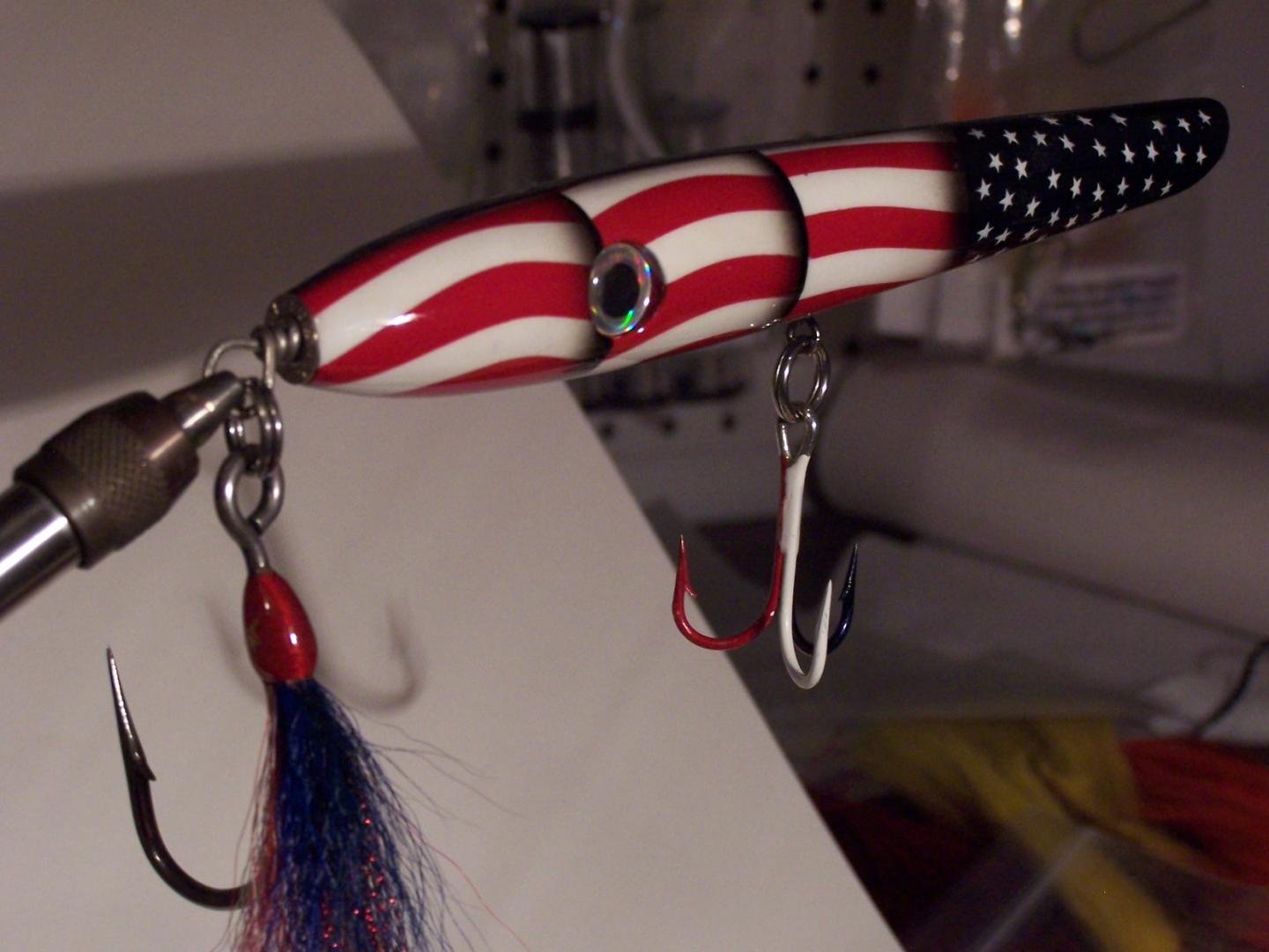 This pencil was turned in 2004 by Larry "Bigfish" Wentworth and painted by none other han Mike "Fishing Freak" Delzingo. I have been the caretaker of this beautiful plug since I won it in a raffle at a 2004 plug night at a Mass. Stripe Bass Meeting. Obviously it has tnever been swum, or should it be. It has been stored upstairs in my office since the night I brought it home. I have something special I want to buy this year and selling this plug will help me get there. I have a minimum I want for the plug and I wont part with it unless the bids, or a bid, reaches that point. It is an extraordinarily unique fishing lure, and looks every bit as good in person as it does in these pics. Just so that everyone knows I emailed the boss with my minimum sale price. I dont want anyone to think that price will keep changing. I dont expect to get what JR was offered for his flag Mac pikie he has, but halfway there would be nice. This sale/auction ends at midnight February 7, 2014. The plug will go to highest offer over the minimum acceptable price that I have told JR I would accept. Thats fair.