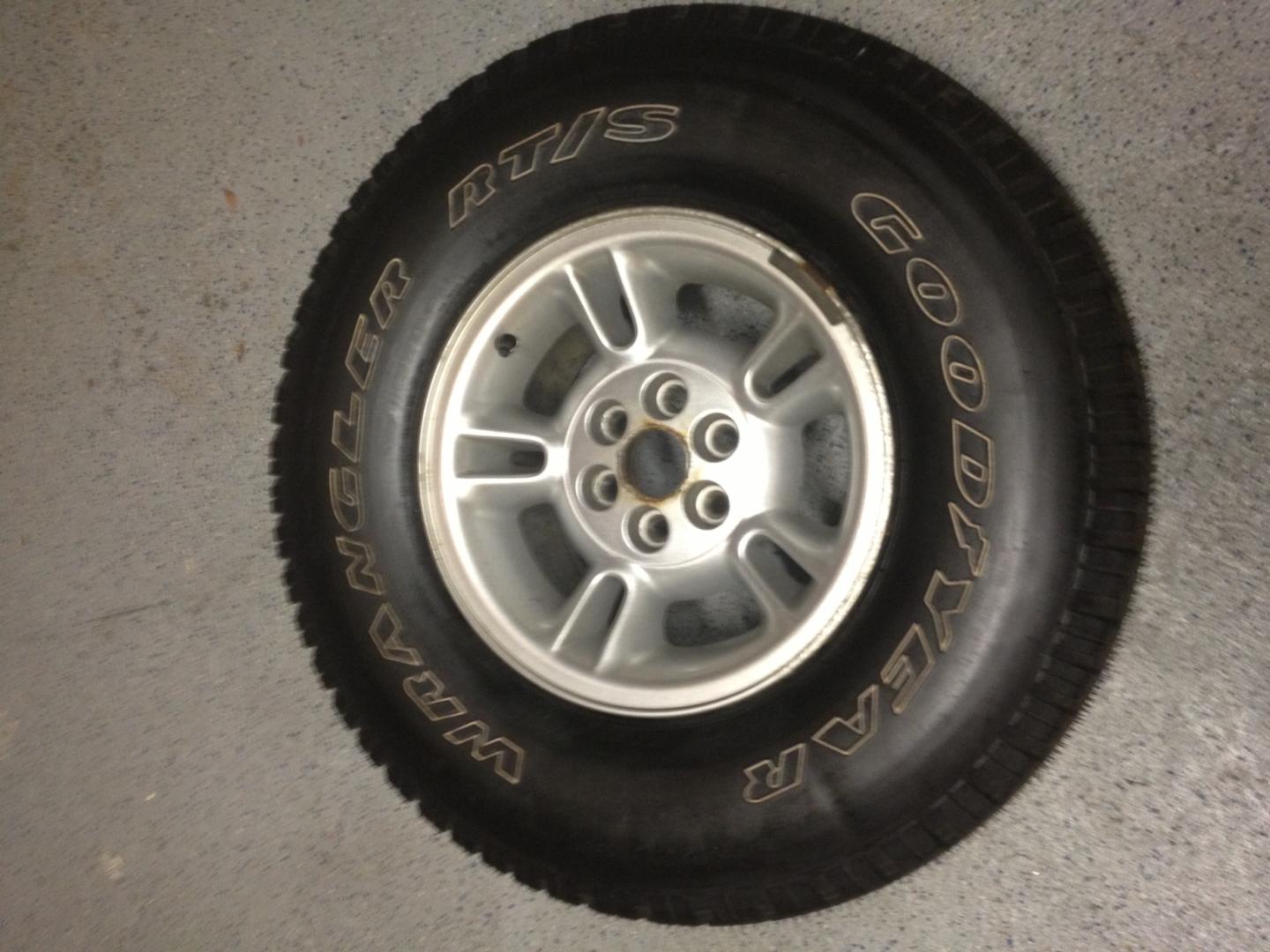 I have two available (one with an unused GoodYear Wrangler RT/S and the other with a Used Uniroyal Laredo as follows):