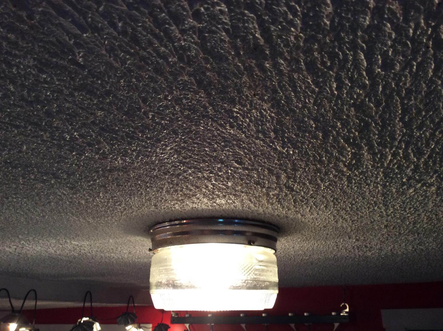 My living room and kitchen have really awful sponged ceilings over sheet rock. A simple option were were thinking would be to just scrape off the sponged plaster and go over with a thin bead board. I've installed it on walls (using adhesive and staples) but never on a ceiling.
