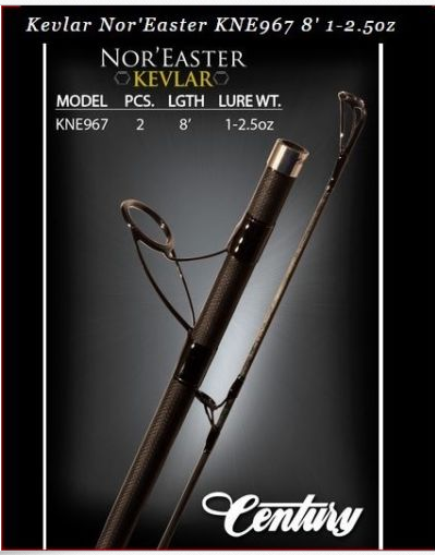 Century Kevlar Nor'Easter, Model KNE 967 rated for lures 1 to 2.5 oz.