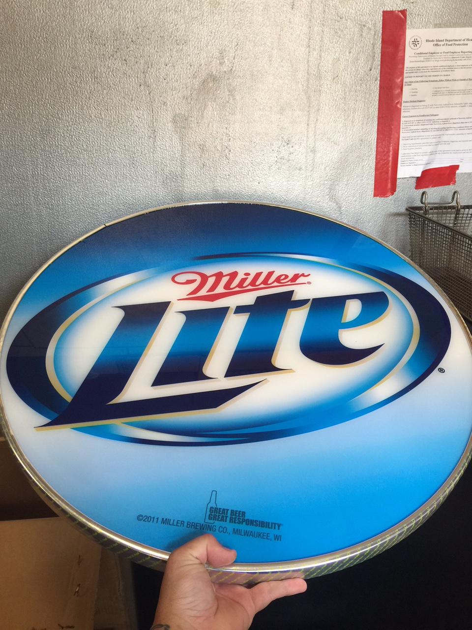 I have a brand new 30-36", not sure of actual width, brand new miller lite bar hi top table. all metal base and support.