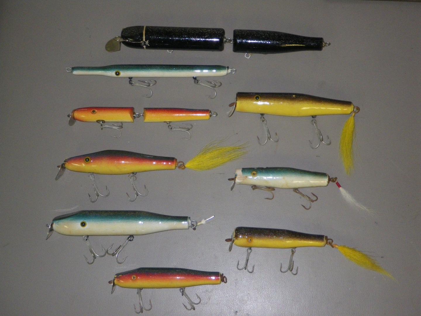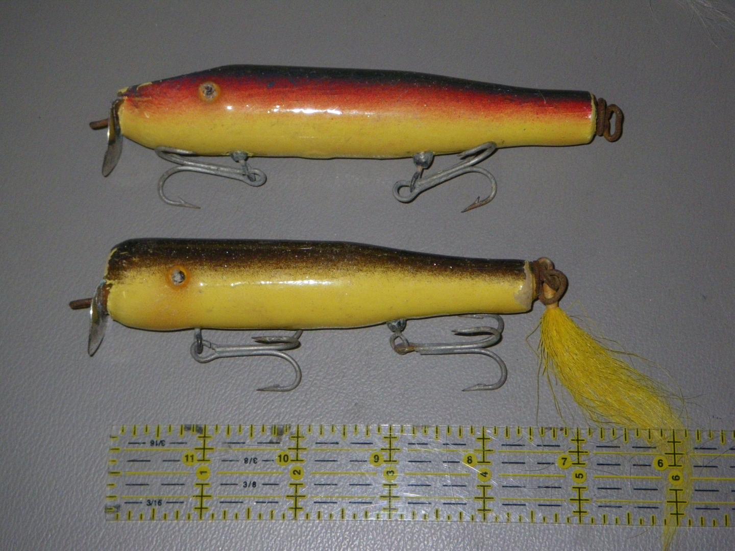 Paul also makes a copy of a little Pichney (the lime green plug in the picture). This stays right on top and fishes great. Recently I came across an original but different version of the Pichney plug Paul copied. It is 1/2 " longer and a smaller lip (the one in the picture is missing its second belly hook). I think I saw a picture of a similar Pichney original that only had one belly hook over on SOL.
