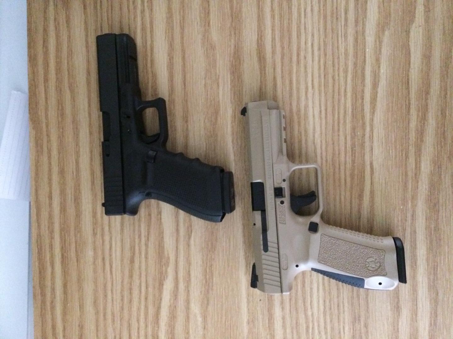 G21 .45 left and Canek TP9SF right.