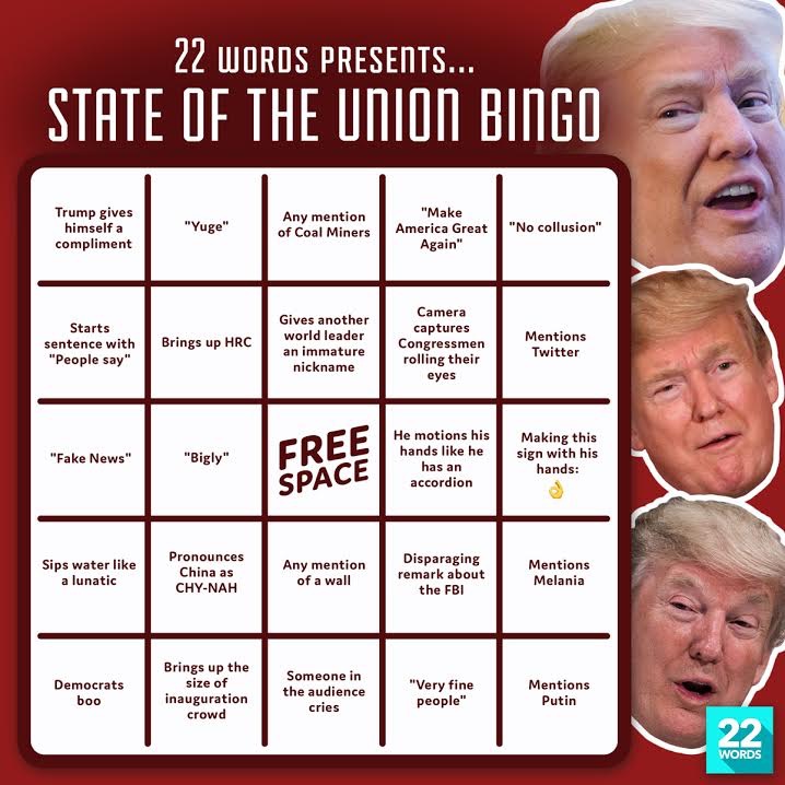 Here is what I expect. Trump will take full credit for the sun rising, the moon moving our waters, the love fest that is the USA today, the best stock market EVER, the healthiest economy EVER, the lowest jobless rate EVER, being the smartest POTUS EVER, having the highest IQ of any POTUS EVER and you can fill in the rest of the blanks.