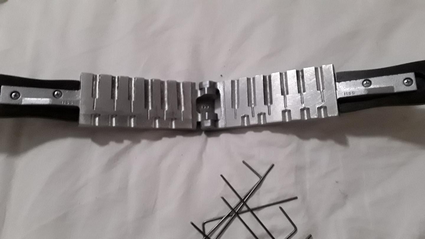 It was fairly easy. The toughest part was flattening the top and bottom of the mold. They were not only rough, but formed a slight V as well, neither of which was going to work for me. I loaded a sanding disk into the table saw and spent 15 minutes flattening the two surfaces. Then I laid out what I wanted and drilled pilot holes that will also be used to position rods that will create the through holes for the through wire. Then using two bullet point drills that are 1/32" undersize I drilled the weight holes. I also flipped the mold over and drilled 3/8 holes for body weights. For other size weights, which I don't use very often I will continue to make new wood molds.