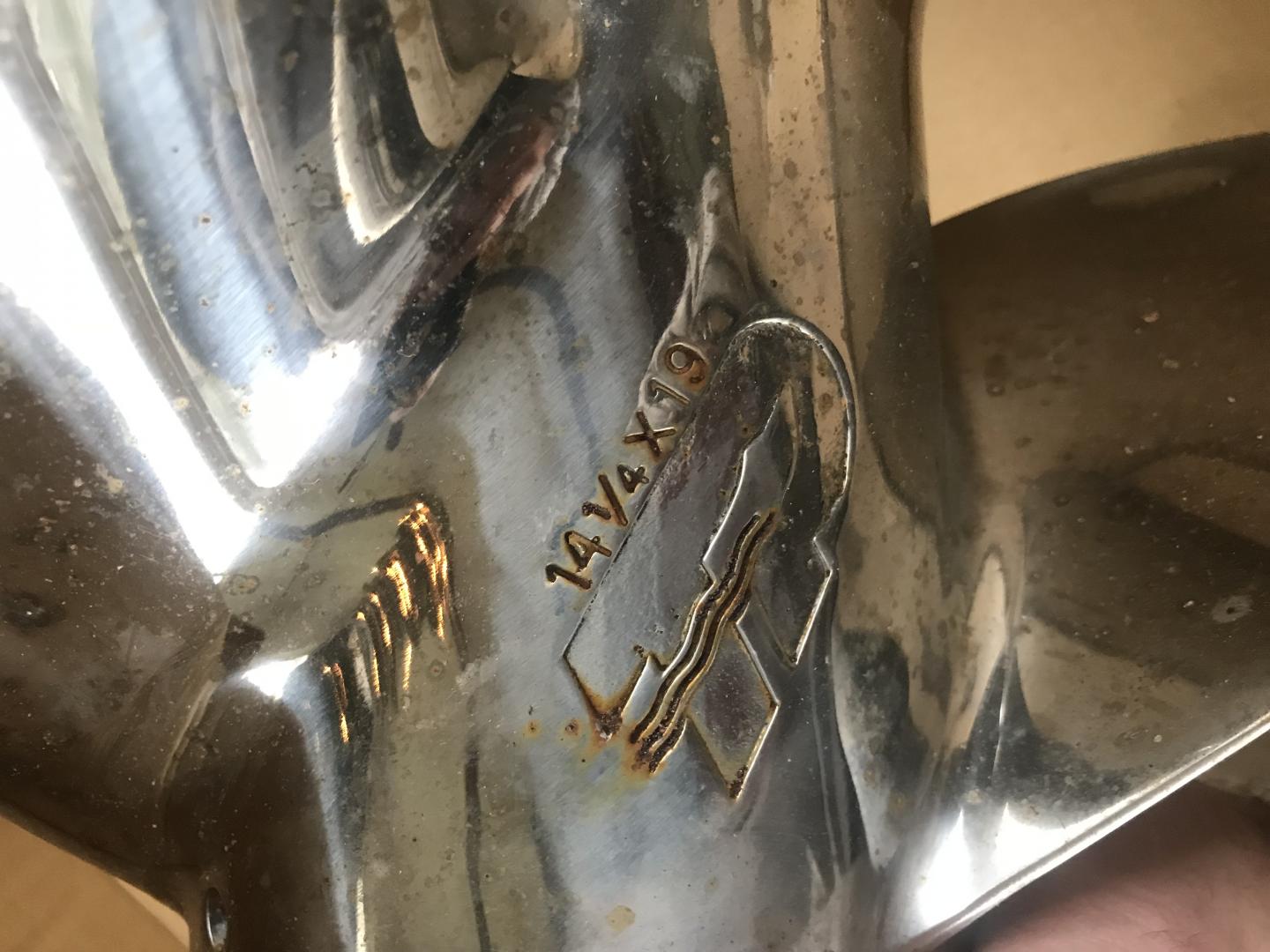 14 1/4 x 19 Yamaha outboard prop in excellent shape. Was used on a 250 hp 4 stroke for less than half a season. Looking for $150.