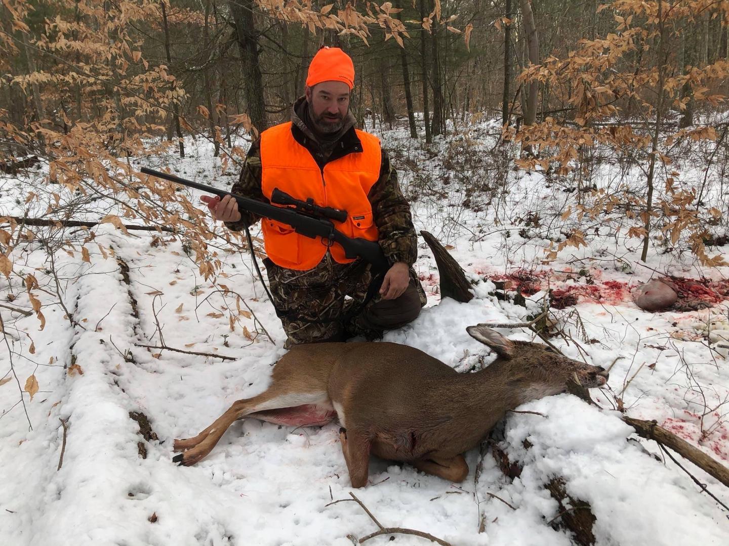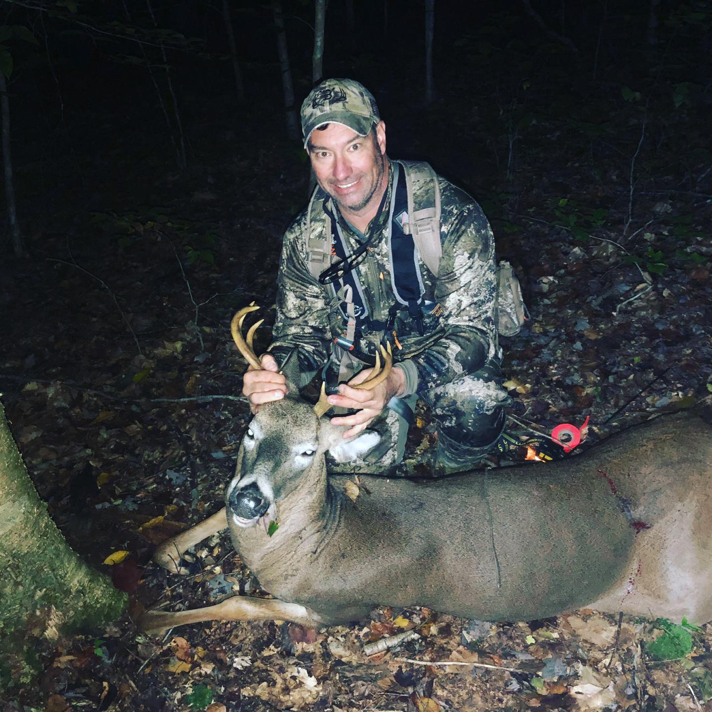 2nd sit of the year and I shot a small 8 point. Had tons of pictures on my trail cams but by the end of the second week of bow all of the deer disappeared. Didn’t really start seeing them again till mid November. Thats when it happened. I had a beautiful 8point come to my stand. Once he hit the scent trail I laid he went ape #^&#^&#^&#^& trying to figure out where the doe went. I use a single pin sight and was set for my shooting lane where I had the drag hanging at 25 yards. The buck was so confused he started to head back to where he came from. He was stopped quartering away and I guessed it at 30 so I held high on him. I let it fly and the arrow sailed clean under him. I lated ranged the opening at 36.5. He left, bounding twice then walked away. Being disappointed I figure I would change stands after lunch and head to a stand on the edge of a swamp where I had seen 3 does the night before. After lunch while wee were getting ready to head in, my buddy asked if I was going back to the stand from the am, he said maybe that deer will come back since he wasn’t spooked. I agreed with his assessment so I headed back in to the Ridge stand as we call it. We were in stands by 12:30, around 3:15 I could hear something making it’s way in front of me. Around 3:45 I could see a big bodied deer about 80 yards in front of me, and he was heading right too me nose to the ground. I quickly saw his amazing rack and drew my bow as he approached and started to turn down hill. He came to a screeching halt when he got wind of my scent drag 15 yards in front of him. He was behind a small pine tree, but I could see him well. I needed him to walk 5 more yards to be in the shooting lane, for what seemed like 10 minutes, but was only like 2-3 I was holding at full draw while he looked around for the doe. I am nursing a bad hip, and it was killing me at this point. My arms were getting tired too. I decided in that moment it was either let it down, accidentally release, of thread the needle. So I threaded the needle and the arrow glanced off of a pine bough and thwack. The buck flipped over, but that sound I had heard before. My buddy had arrowed a monster, the buck flipped over and was down. The deer jumped up 30 seconds later and bolted. We never found that deer, the sound I surely heard was shoulder bone. Not wasting another second I nocked another arrow and settled on his vitals. The arrow flew true. After recovering the deer and upon field dressing him I determined that I hit him just in front of his leg, he was quartering a little to me and looking back, and took out both lungs before hitting the opposite shoulder. The first arrow had done the job. The second arrow also found its mark of the heart. This is my biggest buck to date and we have him all summer on trail cams. We thought he was a big 8 or 9, turns out we were wrong he was a 10