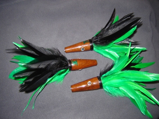 Ok, here are some tuna trollers I made, the heads are turned from IPE (Iron wood) as this was the heaviest wood I could get my hands on. After being turned, the heads are then filled with lead, sealed and epoxied. My wife ties the feathers on then another coat of epoxy over the wraps.