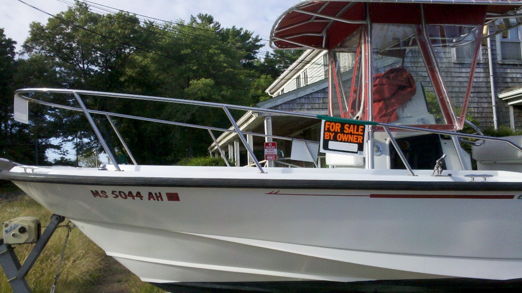 I've been driving by this boat for a few weeks now. I know nothing about it or boats in general for that matter. It's in Halifax after 58 and 106 heading towards Hanson. From what I can see it's a 21' CC whaler Outrage with twin Johnson 150s. I dont know if anyone is looking for a boat but I think a whaler is a good boat? I have the phone # for the guy who is selling it, to me it looks good. No idea $$ wise, its on a newer two axle alum. trailer. If anyone is interested I'll give you the # . I wouldnt want anyone to miss out if this is a good boat because its in Halifax.