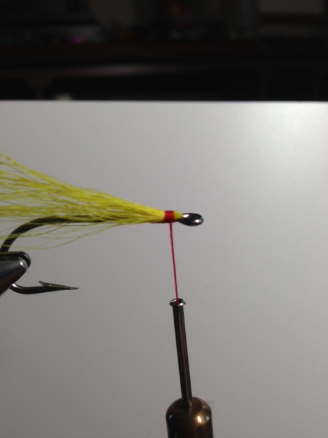 NEXT-----> tie in the flash FIRST, then A SPARCE amount of deer hair.