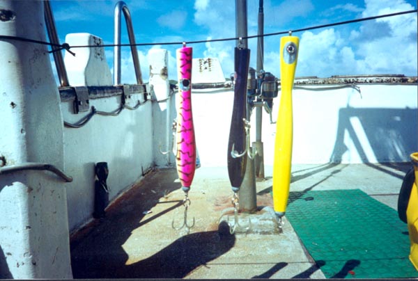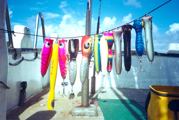 its a Giant Travelly on top and a Dogtooth Tuna on the bottom... both look like mean fish to catch on top...