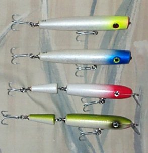 A few just off the drying rack. All AYC and thru-wired. Poppers are 1 1/4 oz and weighed so they'll walk real nice  Swimmers are a tad over 1 oz. Nice wiggle to those and they dig 2-4 feet.