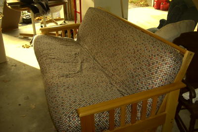 One used futon still in great shape. Folds out to a full size bed. Inherited a day bed and have no use for this futon anymore.