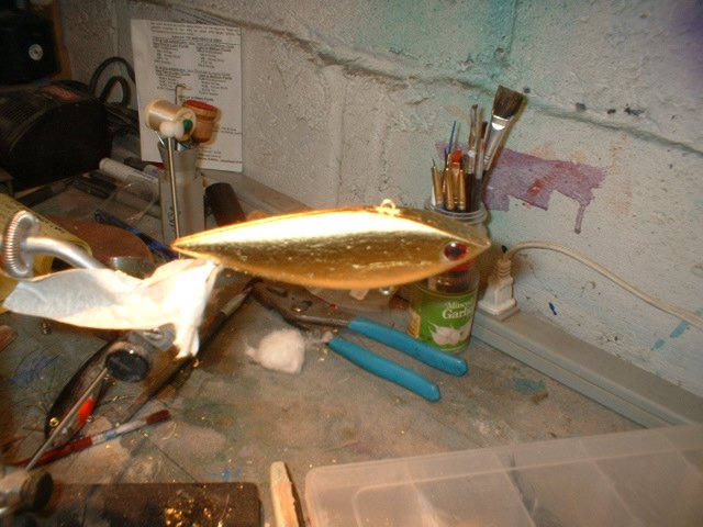 Decided to try some gold leaf on a rattle trap knockoff. Its the real gold leaf and not the gold colored foil stuff. Whatcha think? Anyone else doing foils and have pics?