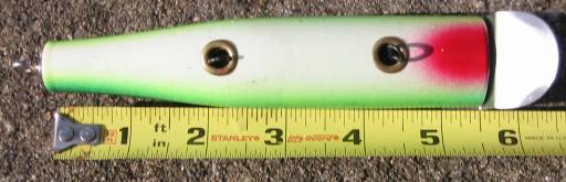 I made one a couple of weeks ago, Pinchney with a slope head. Made out of poplar, about eight inches long, with a #3 pikie lip, a little weight in center. Floats and with a slow retrieve it leaves a wake like a motorboat. I'll have to wait till next year to see if it catches