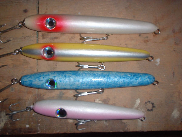 It's based on a couple years of cut and try. I can vouch for Bassmaster on this one I have seen this one evolve. It's not a pencil and it's not a Zara. It owes it's heritage to a Reverse Atom action. Dave has been working on this a while and it's his design based on a few qualities of different classic plugs. The only thing wrong with posting them is that someone will now rip -off the design and be putting them out in every color and pattern and posting "loookey what I did" without crediting Dave for his year or so of work putting it all together. I have no problem with someone copying someones work but I do have a problem when they do not acknowledge the original builder.
