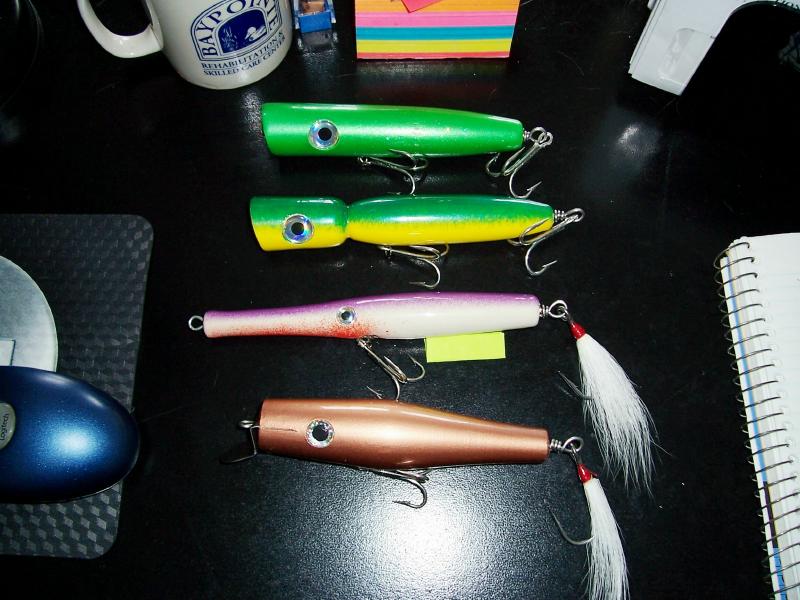 nice plugs. i would push the lip in farther though next time. Next time you make a plug like I saw at Mikes I'll swap you a pike for it if you want.