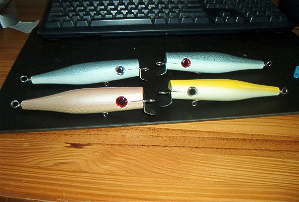 Here's my first run of swimmers. I had a lot of fun working on these. My dad got a new 'light' rod last fall so I wanted to make some small stuff for when we fish light tackle. I was trying to come in at 1 1/2 oz, and had a tough time doing it.