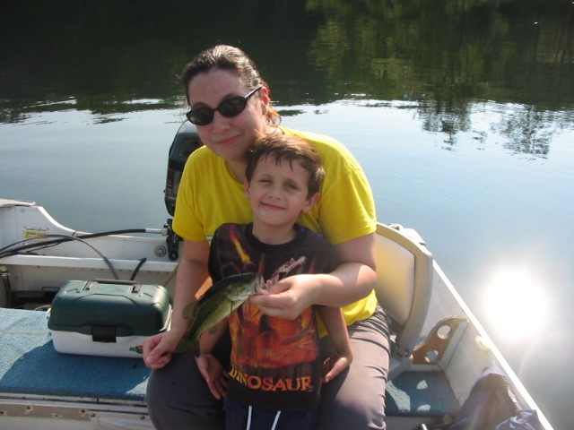 My sister and her son are up from New Orleans for two weeks. She hadn't been fishing since my dad took her when she was a kid, and her son had never been. I took them to the canal last week, but we got skunked, so a cool pal let me take his boat out on the lake, and I got them into some fish. They were so excited, and good at it! I was unhooking fish left and right for them. Here's a picture of my nephew's first largemouth and one of him driving the boat. It was such a great feeling to see them catching and enjoying fishing; it's indescribable.