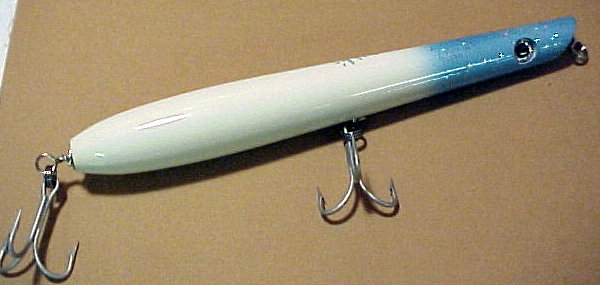 Its 5 oz. 2 Seasons of Testing, Wearing 6x V.M C, Krok Swivels and Triple Split Rings. 3.5 oz. to follow. TRY the 2oz. LONG CAST Model And the "Original" Squid Poppers .