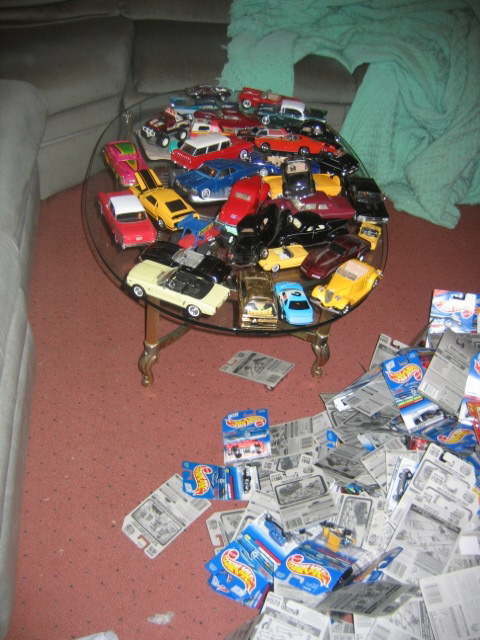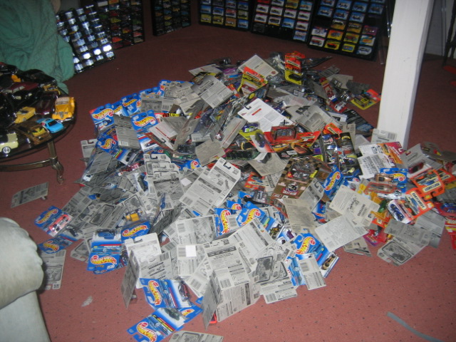 mike, i have about a thousand hot wheels in my basement. never thought you would be into them my son loves hot wheels been buying them from 1999 to present some are played with only once or twice but all are taken out of packs and played with. i also have a few slot cars from the early 70s with motors but those are kept out of reach from my son, got lots of comic books too that i collected from early 90s and a sports card collection, ( marino rookie card, jerry rice rookie card, cal ripken rookie card ) just a few i remember. got some nascar diecast stuff too with autographs from a while ago, got dale earnhart sr. rusty wallace and jarrett signed winners circle cars in unopen packs. also all kinds of sports figures i forget what there called in unopend packs ( jordan,marino,montana,nomar ) all sports must have about 50 of them from the 80s to 90s just sitting in a closet.