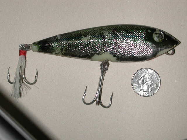 George, that plug was made by Cotton Cordell, they were only on the market for a few years in the seventies (early). Can't remeber the actual plug name though but give me a while. Nice work. We have to get together after X-Mas for those lessons we talked about. Santo will be dropping by your house if your good.
