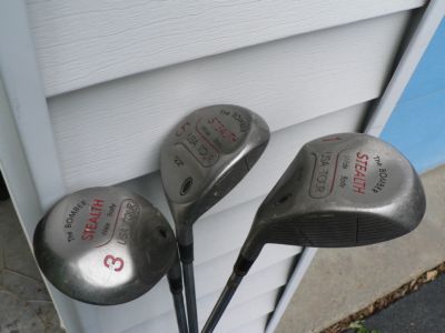 1-3-5 "The Bomber Stealth" steel woods. Steel shaft, RH. Supposed to be Callaway "knock offs"