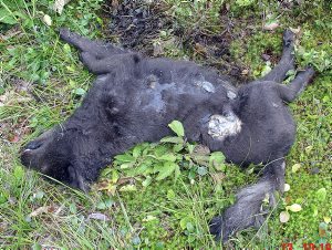 Wildlife officials and animal control officers declined to go to Turner to examine the remains. By Tuesday, the carcass had been picked clean by vultures and there was not much left of the dead animal.